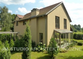 Elewacja: ręcznie robiony niemiecki klinkier, silikonowy tynkiem Baumit